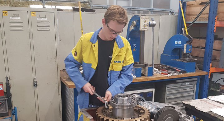 “Tot nu toe vind ik het erg leuk op school, het is een interessante opleiding waarbij je veel in de praktijk leert, aangevuld met theorie. Het bezoeken van de verschillende fabrieken op het terrein maakt het nog leuker. De opleiding is erg afwisselend: de ene keer gaan we naar een fabriek de andere keer hebben we bijvoorbeeld les in monteren en stellen, robotica of bankwerken.”