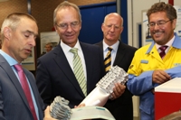 Minister Kamp van Economische Zaken heeft maandag 9 september een bezoek gebracht aan Tata Steel in IJmuiden. Karl Köhler (CEO en Managing Director van Tata Steel in Europa) en Theo Henrar (directievoorzitter Tata Steel Nederland) spraken met de minister over innovatie en het concurrentievermogen van de staalindustrie in Europa. Vervolgens bracht de minister een bezoek aan een van de dompelverzinklijnen (waar rollen staal van een laag zink worden voorzien) en het R&D center voor de automobielsector.