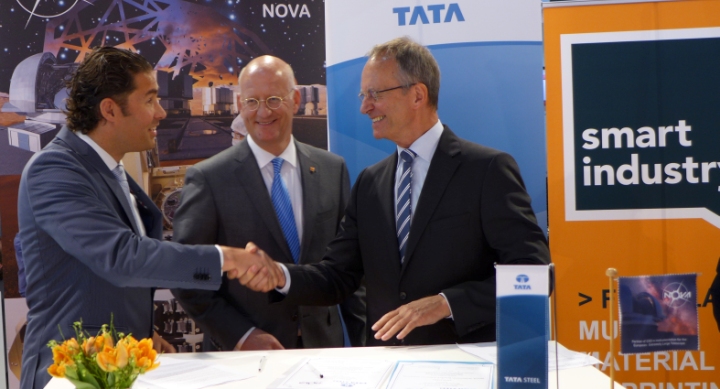 Het lijkt vreemd: een staalproducent die samenwerkt met sterrenkundigen. Toch ligt een samenwerking meer voor de hand dan op het eerste gezicht lijkt. “Tata Steel is een innovatief, hightech bedrijf”, aldus Theo Henrar, directievoorzitter van Tata Steel Nederland bij de ondertekening. “Wij werken continu aan het ontwikkelen van nieuwe staalsoorten waarmee je bijvoorbeeld auto’s veiliger, maar tegelijk ook lichter en dus zuiniger kunt maken. Tot op moleculair niveau kunnen we het staal unieke eigenschappen meegeven. Tata Steel maakt gebruik van hoogwaardige technologie waaronder zogenaamde ‘smart technology’: slimme, nieuwe productietechnologieën die we zelf of in samenwerking met gespecialiseerde bedrijven ontwikkelen.”