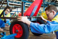 Negentien eerstejaarsleerlingen werktuigbouwkunde van onze bedrijfsschool zijn momenteel druk in de weer met het bouwen van skelters voor basisscholen in de regio.