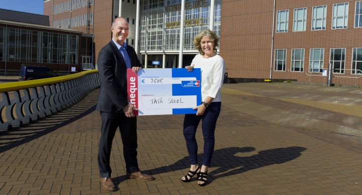 Medewerkers van Tata Steel hebben dit jaar 7.585 euro ingezameld voor KWF Kankerbestrijding. Hans van den Berg, directeur van Tata Steel in IJmuiden, overhandigde vanochtend de cheque met dit bedrag aan Willemijn van den Berg van KWF Kankerbestrijding.