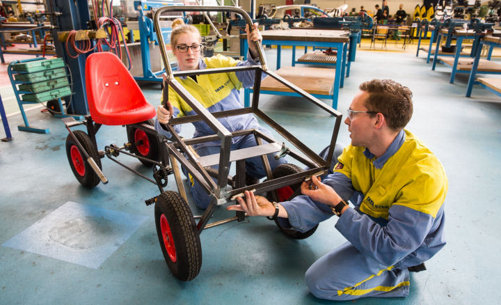 Leerlingen werktuigbouwkunde van de bedrijfsschool van Tata Steel in IJmuiden bouwen momenteel skelters voor vier basisscholen in de regio. “Dit project heeft een tweeledig doel”, zo stelt Jeroen Klumper, manager van de Academy van Tata Steel. “Onze jonge technici leren hun kennis in de praktijk toe te passen en doen ervaring op met de vele facetten van het managen van een project. Tegelijkertijd geven ze concreet invulling aan de bedrijfsfilosofie van Tata Steel, waarin maatschappelijk ondernemen een centrale plek inneemt. En dat doen ze met veel enthousiasme”, aldus Klumper.