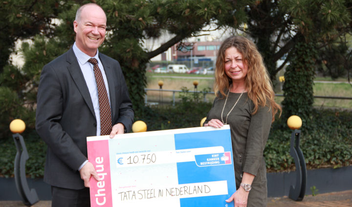 Hans van den Berg, directeur van Tata Steel in IJmuiden, heeft vanmiddag namens de directie en medewerkers van het staalbedrijf in IJmuiden en van de vestigingen van de Tubes buizendivisie (Maastricht, Oosterhout en Zwijndrecht) een cheque van 10.750 euro aan het KWF overhandigd. Dat is het bedrag dat de medewerkers van Tata Steel in Nederland met een verscheidenheid aan acties hebben ingezameld ter gelegenheid van Founder’s Day.
